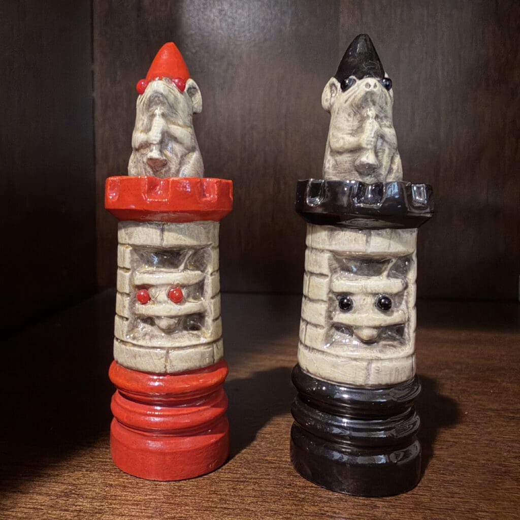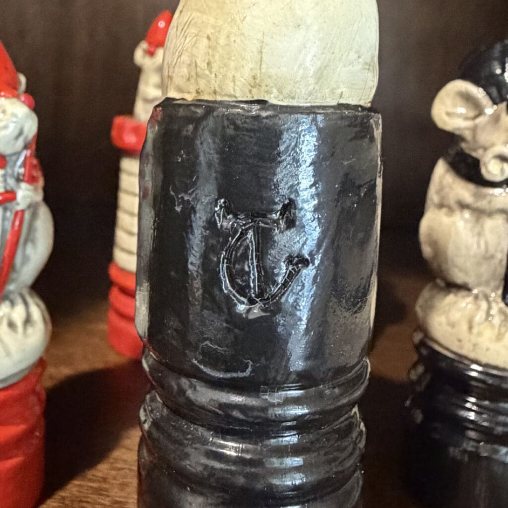 About George Tinworth. George Tinworth was a pioneer at the Doulton Lambeth pottery, celebrated for his exceptional skill and imagination. Born in 1843, Tinworth overcame humble beginnings and the challenges of poverty to become one of the foremost ceramic artists of his era. His work was renowned for its meticulous craftsmanship, inventive forms, and playful spirit—qualities perfectly embodied by his rare mouse chess pieces. Though he created grand sculptures and exhibited at the Royal Academy, these small, lively masterpieces demonstrate Tinworth’s boundless creativity and are highly collectible.